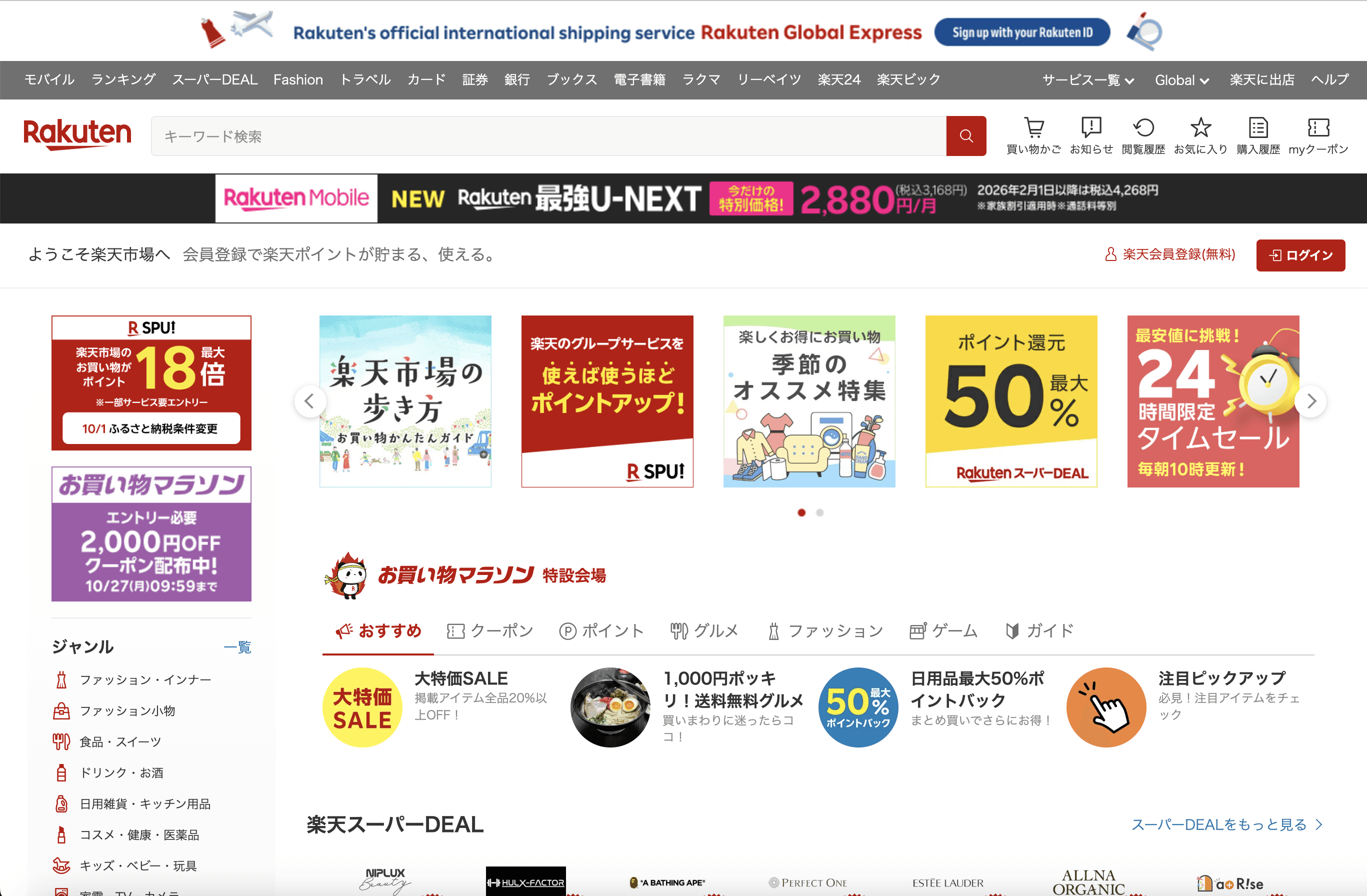 Rakuten Japan homepage community rewards, group points.