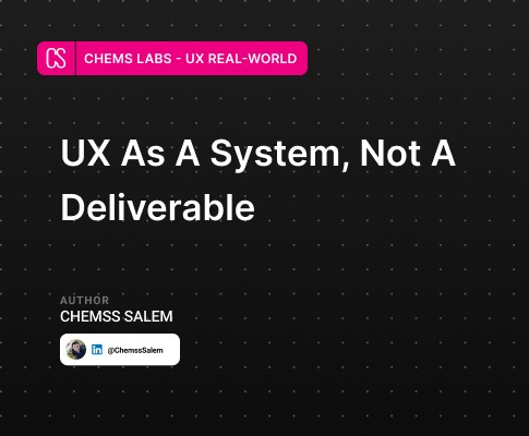 Chemss Labs explores why strong UX work often fails inside real organizations - not because of craft, but because of decisions, incentives, governance, risk, and the evolving influence of AI on complex systems.